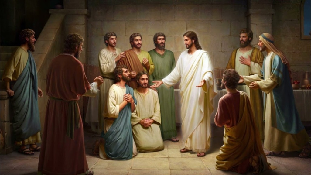 Ці слова Ісус промовив, коли з’явився апостолам у неділю ввечері. Вони були шоковані появою Спасителя і думали, що бачать духа, а не справжнього Христа з Його прославленим тілом. Ісус закликав їх уважно подивитися на Його руки та ноги, а крім того доторкнутися до Нього та переконатися, що це справді Він. Ісус навіть попросив їх дати Йому щось поїсти, як ще один доказ того, що це Він з Його воскреслим тілом. Тоді подали Йому печену рибу та стільник меду, і Ісус їв перед ними. Там ще залишилися кістки з риби як свідчення Його реальної присутності.