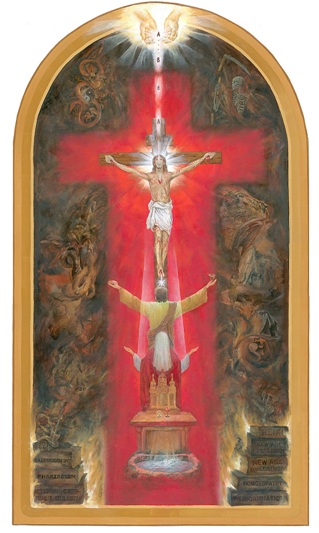 Ця молитва на початку також має акт покаяння. Усвідоммо три області, через які діє гріх, що знаходиться в душі і негативно впливає на тіло: «Я є свавільник, гедоніст і осуджувач». Тоді збуджу жаль поглядом на п’ять Христових ран на хресті і знову усвідомлю, що ці рани і біль Христос жертвував за мене для прощення моїх гріхів. З цих ран витікала Ісусова кров за мене!