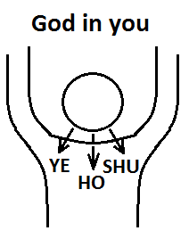 Take a breath and, breathing out, utter: “YE” and realize the presence of the Triune God (the Father) in you.