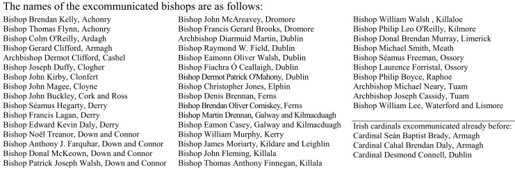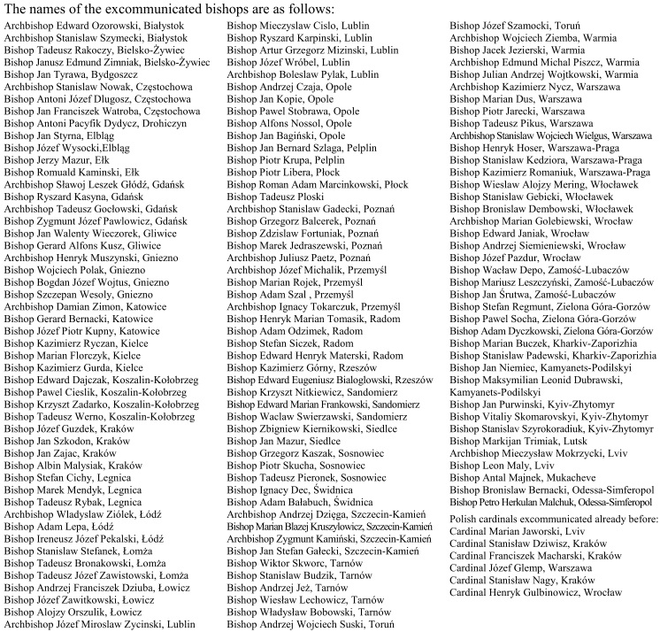 Declaration of excommunication against the Polish and Irish bishops (17.11.2009)