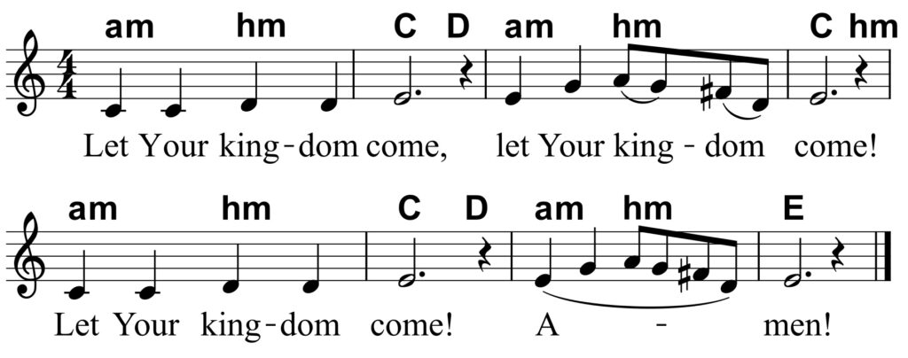 While I repeat the vowel “aa” the first and second time, these two simple images help me to keep focused. They are the same throughout the prayer when calling on the name Yehoshua. When breathing out “aa” the third time, the image or thought changes according to the particular truth that I experience by faith at the moment. This principle is repeated throughout the prayer.