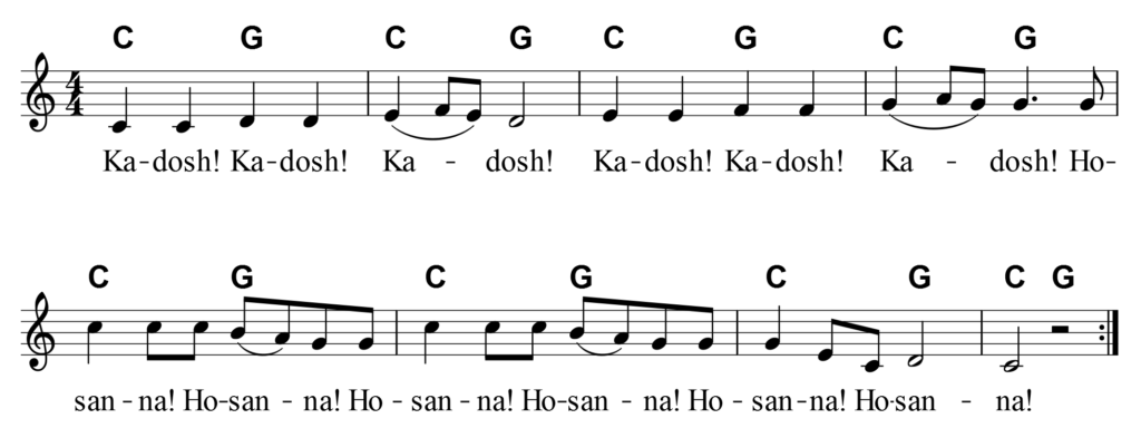 A song of thanksgiving and praise at the end (Kadosh, Kadosh… [Holy] or others)