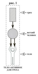 Писание гласит: «Адам стал душею живущею» (І Кор. 15,45). Из-за греха он потерял Божью жизнь и ему осталась только душевная (психическая) жизнь, которая через грех подсоединяется к дьяволу. Адам стал независимым от Бога и таким образом уподобился дьяволу.